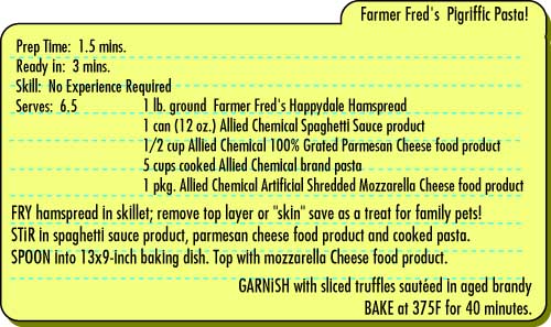 Farmer Fred's Pigriffic Pasta! Blobster & Broccoli Surf N' Turf Lasagna Rolls Classic Hamloaf